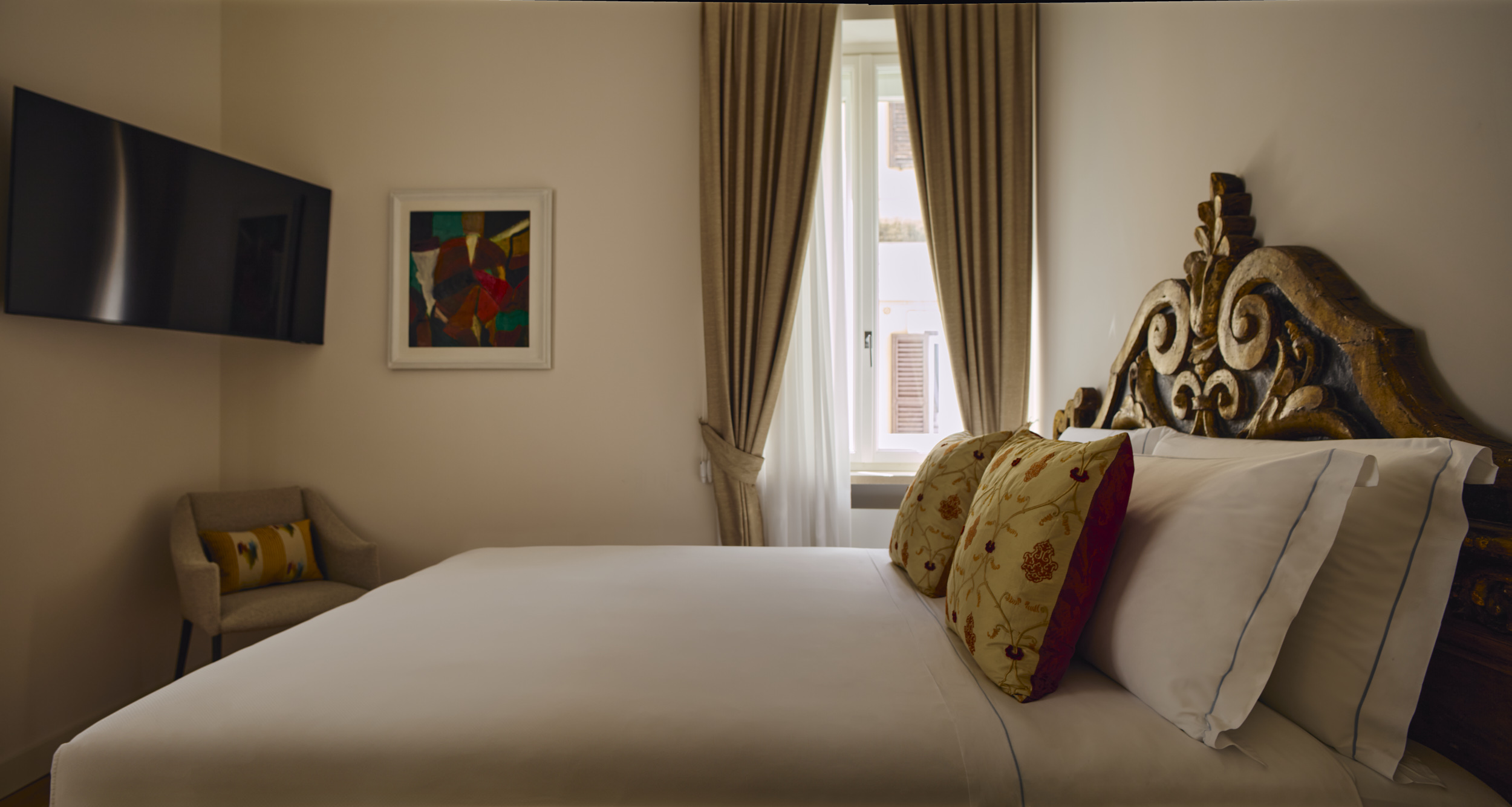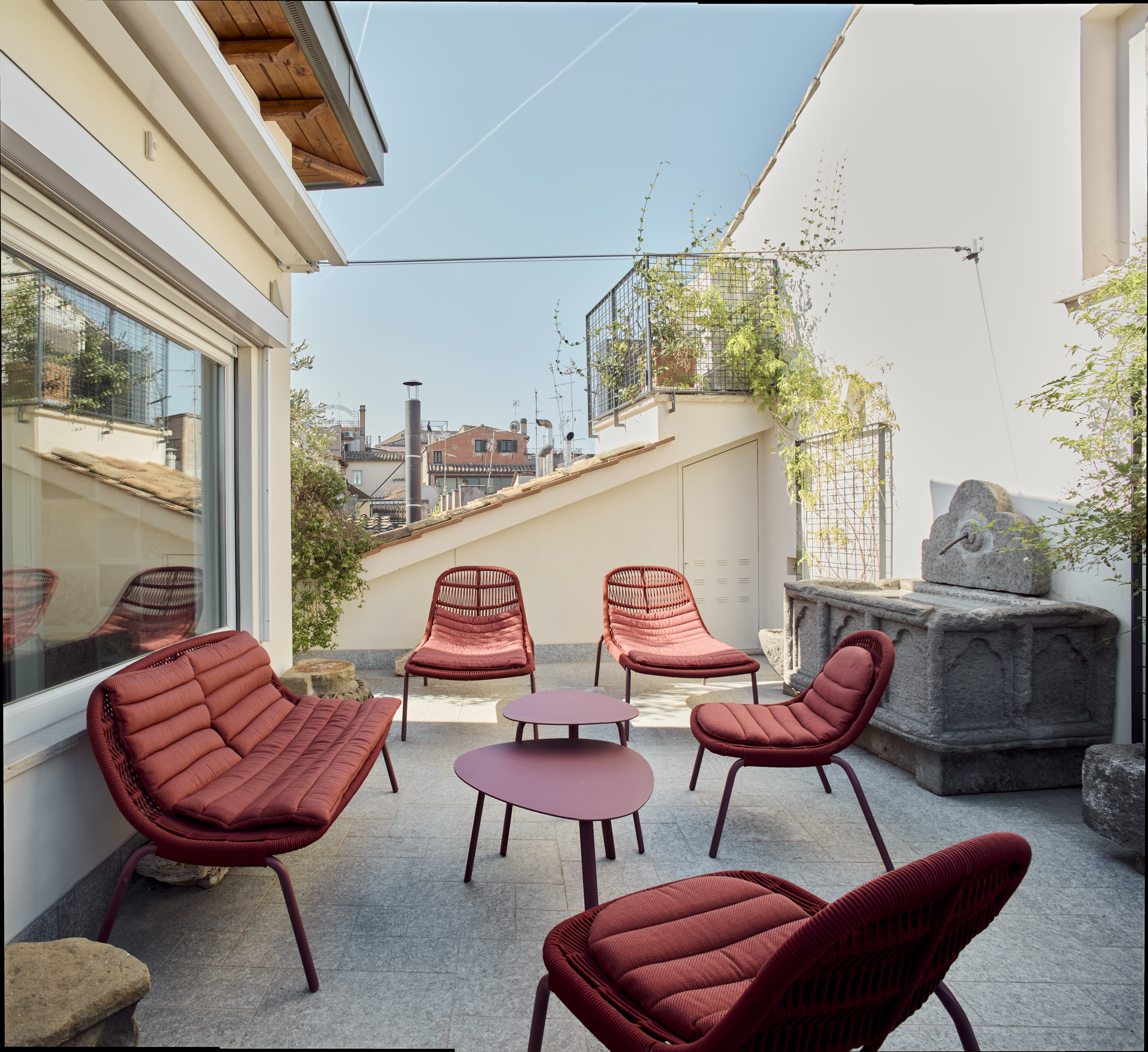 El segundo apartamento se desarrolla en dos niveles en el ático, tiene una superficie de 120 metros cuadrados (1300 SF) y tiene capacidad para 6 personas. Consta de tres dormitorios dobles, uno con sofá cama, convertible en estudio, y tres baños; a través de una cómoda escalera de madera y acero diseñada por el arquitecto Pappalardo, se accede al hammam privado y a la amplia sala de estar, con cocina totalmente equipada y la gran terraza panorámica.